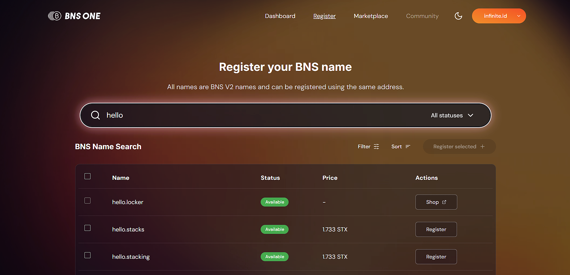 ### Registering a BNS Name